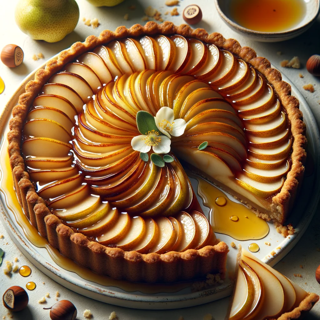A gentle tart where honeyed pear meets the quiet hum of chamomile and roasted hazelnuts.