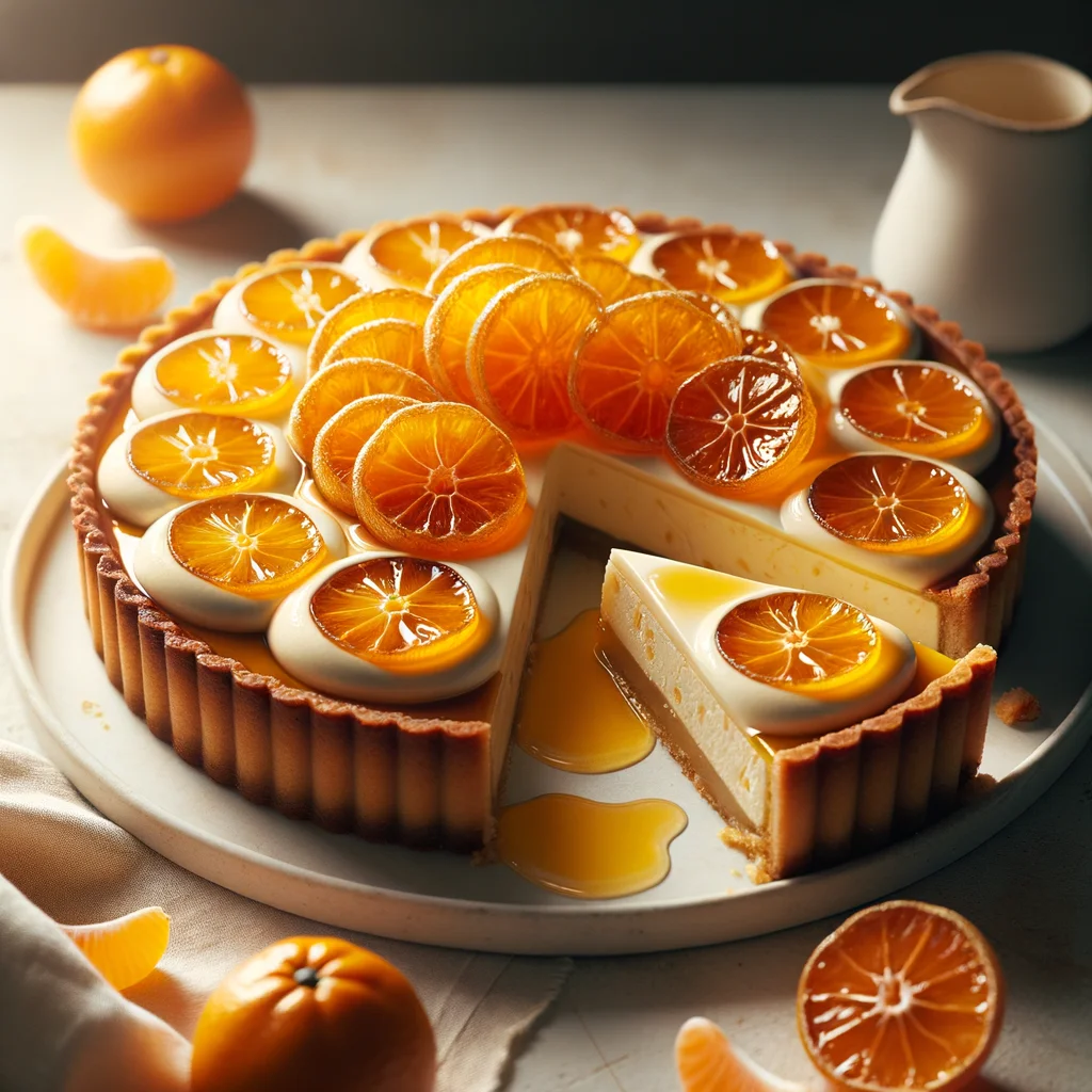 A golden tart where saffron and tangerine meet on a bed of tender cream.